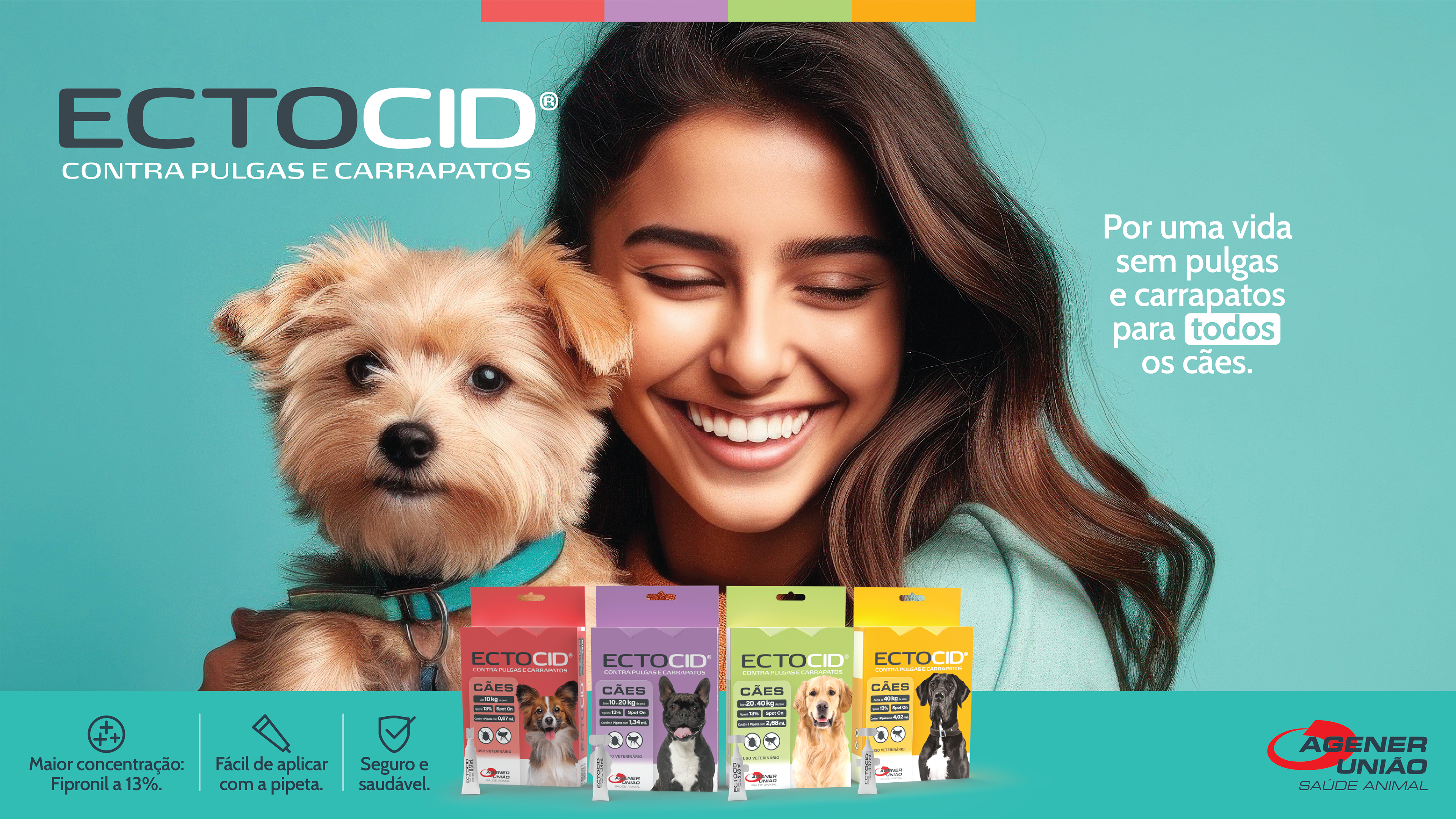 A Agener União Química procurou a Brain2Do para o lançamento do Ectocid, seu novo produto contra pulgas e carrapatos em cachorros. A agência tinha que elaborar o Conceito Criativo, peças para o ponto de venda e para a equipe comercial.